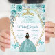 Aqual Teal Turquoise3 Butterfly & Rose Mis Quince Invitation