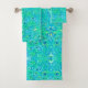 Towel set in a turquoise and aqua / aquamarine, ornate, arabesque pattern with a bohemian vibe