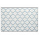 Aquamarine Blue Moroccan ogee trellis pattern on white fabric (Small pattern version, use the "Customize It" tab to easily change the scale and direction of the pattern to suit your project). This versatile quatrefoil pattern fabric is available as machine washable 56" wide combed cotton, 54" wide pima cotton, 58" wide cotton twill, 60" wide polyester poplin, 58" wide woven polyester or linen which has a width of 54 inches and is dry clean only. Available as swatches, fat quarters, or by the yard. Printed in the U.S.A. A choice of perfect cloth fabrics in modern colors for home decor, upholstery, quilting, crafts, apparel, applique or other textile DIY projects.