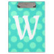 Aquamarine Polka Dot Single Letter Monogram Clipboard