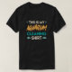 My 11 yo wore adult XL (5’7” 165#). The 8yo is small framed. She wore adult small and tied it in the back. Grandma wore adult large with long sleeve shirt underneath. Tall girl adult medium. Dark haired male adult large. Good quality dark Heather gray, Gildan brand shirt. -it was next up from basic choice and cost about $20 per shirt. Not too thick or thin. Washed and dried well, no major shrinkage. Not see-through. Can wear a bra under it fine. Screen print is just as shown and well done, front and back.