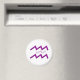 Design features the Aquarius zodiac symbol in fuschia with "aquarius" in a wave type pattern inside the symbol.