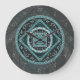 This Aquarius themed mandala features a turquoise stone surrounded by the symbol for the sign, the constellation, and the alchemical symbol for Air among filigree and weaves.