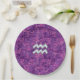 Aquarius Sign on fuchsia pink digital camo Paper Plates