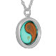 I chose gold plated so that the metal would not react with my skin oils and perspiration. But, I changed the necklace from the gold plated one to a sterling silver. My skin cells will tarnish the silver. But it will not look as bad if some portion of the gold plated necklace somehow became compromised. Zazzle did a find job turning the picture into a pendant for me. As you can see, the colors and the printing of the final product, match the preview. The picture I took is not very clear. But I am pleased with the product I received.