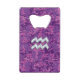 Aquarius Zodiac Symbol on fuchsia digital camo Credit Card Bottle Opener