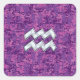 Aquarius Zodiac Symbol on fuchsia digital camo Square Sticker