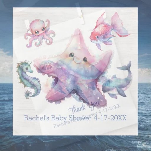 Watercolor aquatic animals theme; fish, whales, seahorse, starfish and tortoises.