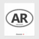 AR state abbreviation vinyl sticker for Arkansas. Create your own personalized stickers for vehicle, luggage, bike, water bottles, laptop and other products. Unique contour-cut stickers. Available in small, medium and large sizes. Add your own text. Great for international and national travel, road trips, vacations, sports events and more. Classic European automotive style white oval shape sticker sign.