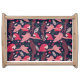 Ara Parrot Red Pink Drawing Tropical Leave Pattern Serving Tray. Pink and red ara pattern on dark blue background with tropical leaves in green, red and beige colors. Hand drawn illustration.