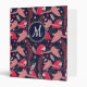 Ara Parrot Red Tropical Leave Pattern Monogram Binder. Ara pattern on dark blue background with tropical leaves in green, red and beige colors. Add your monogram and text on the spine.