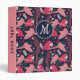 Ara Parrot Red Tropical Leave Pattern Monogram 3 Ring Binder