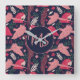 Ara Parrot Red Tropical Leave Pattern Monogram Square Wall Clock. Ara pattern on dark blue background with tropical leaves in green, red and beige colors. Great for parrot lover and ara owner. Add your monogram.