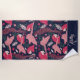Ara Parrot Tropical Pattern Drawing Monogram Name Beach Towel. Ara pattern on dark blue background with tropical leaves in green, red and beige colors with a name in pink script. Great for parrot lovers and parrot owners. Add your name or monogram. The towels are also available with the pattern only - open the collection below.