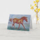 Watercolour painting of a chestnut arabian horse trotting across the grass. Card is blank for your own message or you could add a message using the Add text function.