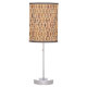 Ornate, arabesque swirl pattern lamp in shades of camel tan, chocolate brown and caramel, outlined in white, with a light camel tan background