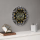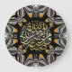 Custom Art Wall Clock : Arabesque inspired decorative silver, gold and black design with complimentary Arabic calligraphy in the centre, for daily Muslim blessings at home or office .