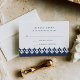 Designed to coordinate with our Arabesque wedding and event invitations, this elegant response card in classic navy blue and white features a Moroccan inspired geometric bottom border. Add your RSVP date and reply text in matching navy
