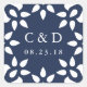 Seal your wedding invitation envelopes, favors and more with our elegant Moroccan inspired stickers in navy and white. Rounded square design features your initials and wedding date surrounded by a geometric border in white on a classic navy blue background. Coordinates with our Arabesque wedding invitation collection in navy.