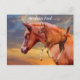 A photograph collage of an Arabian foal and a colorful sunset, displayed on a postcard. This foal's sire is a champion show horse. --- Photo is copyrighted by the photographer, Christina Spiegeland.