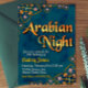 Step into a world of mystique and be enchanted on this Arabian Night invitation. This invitation was made special by using captivating background color with complimenting gold and diamond decorations to capture the vibrancy and allure of a Arabian themed party