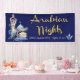 Arabian nights birthday party banner with beautiful blue and gold illustrations on a royal blue and gold background. This elegant Arabian nights party and event banner is easily customized for your event by simply adding your text in the font style you prefer. You can also change the background color on this elegant Arabian nights party banner. This is a printed design with no real glitter, foil, etc.