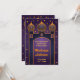 A beautiful Arabian Nights Party invitation that can be used for birthdays and other occasions. The card has an Arabic dome style structure that is yellow and blue. The background is a gradient purple with twinkling stars in the background. Very pretty for all occasions.