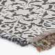A quality printed throw has its advantages. This is a much finer weave throw than its loopier cousins, and though lighter, it is worth the investment for custom room accessorizing. The back is much prettier than the typical brown, and the fringe on the long sides very vivid, the selvage nicely done. Before photographing, I washed the throw in cold water, delicate, with a thicker woven throw the same size. On tumble dry low, this throw was dry in half the time as the other. This is a very practical quality if you use throws for furniture covers or to wrap up in frequently. The sleekness of the fabric makes it a great layer for accenting or protecting without the feeling of sitting on too much stuff. Perfect for napping or when you feel a light chill coming on. The color printing is beautiful and on this fabric, matched the design and color of my Photoshop image. This is an advantage for blending room fabrics and colors. The fringe on the short sides prints the colors from the design image and therefore varies from the side fringe. I streaked a white fractal line through the plaid pattern to give the illusion of weaving. This printed as crisp as an illusory thread, and put some white in the short side fringe, showing another advantage of print vs loomed- for artistic purposes, line lines, detail, and color integrity can be planned and preserved. My loomed throws have color limitations and more of a needlepoint texture. Print throws reproduce an exact image. The throw felt a little stiff straight out of the package, but this went away in the first delicate wash. Of course I searched the wash water for ink or bleeding and there was none.
