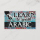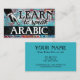Colorful arty Learn To Speak Arabic business cards in turquoise, aqua, red, yellow. Arabic language Instruction business cards.