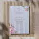 Arabic wedding invitation featuring delicate blush peony florals and subtle gold-effect calligraphy, designed exclusively for Islamic Nikah ceremonies and traditional Muslim weddings. Printed on frosted acrylic, the design has a soft translucent finish that enhances the elegance and creates a refined, modern presentation.