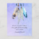 An inspirational motivational arapaho indian tribe / native american proverb which says: If we wonder often, the gift of knowledge will come. The design is created with a watercolor image of four soft delicate looking feathers beaded together hanging down from the top border. The background is a purplish blue watercolor texture.