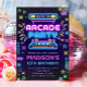 Arcade Party Glow Neon Video Game On Girl Birthday Invitation