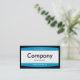 An arced rectangle with a white band with a black outer border. The top and bottom colors of the rectangle can be customized. Company details on the front and name and other contact details on the back.