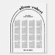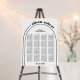 Black and white arch and typography wedding seating chart Foam Board. Make a statement with this modern black and white seating chart that will enhance your wedding decor. The sleek design showcases a double arch, and the clever use of the couple's names creates an illusion of the outer arch towards the right side of the chart. This seating chart effortlessly combines minimalistic elements with stylish details, resulting in a visually appealing and contemporary addition to your wedding venue.