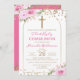 Arch Gold Pink Floral Girl First Holy Communion Invitation