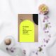 Neon yellow arch at bottom with foil arch at top right with monogram.