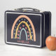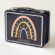 Share the love with this cheerful Boho rainbow lunch box with hearts and stripes, great for school or work. This lunchbox can be personalized, and is 100% customizable. If you like the rainbow design as is, you can simply click on the blue Personalize button and type in the name you want, then click the X to exit, and add to cart. If you want to change the design completely - even to the individual colors of the rainbow, the font, or anything else, click on the blue button (in the Personalize this template window) that says Edit using Design Tool. This design has the rainbow colors of blush or pale orange, baby blue, mauve, and yellow gold. Lunchbox also available in white, silver, and other colors.
