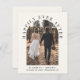 Budget-friendly light cream elopement or smaller wedding announcement and reception invitation. The front features your wedding day photo in an arched frame and "Happily Ever After" in elegant typography. Under your photo, add your first names, wedding date and location. On the reverse you can personalize your message in more detail and add party or reception details and your names in a signature-like script.