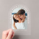 Chic clear acrylic destination wedding save the date featuring your photo in an arch frame surrounded by "Pack Your Bags And Save The Date" in elegant white typography. Under your photo, add your first names, wedding date and location, and a third line of text, such as "Invitation to follow" or your wedding website.