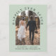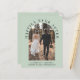 Elegant and budget-friendly sage green elopement or smaller wedding announcement and reception invitation featuring your photo in an arched frame and "Happily Ever After" in elegant typography. Under your photo, add your first names, wedding date and location. On the reverse side, personalize your announcement and party or reception details and add your names in a signature-like script.