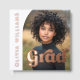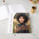 Graduation guest book featuring your photo inside a half arch frame with foil text overlay "grad" in a retro style font. Aligned vertically to the left is a template field for the graduate's name. Additional photo on the back and custom text on the spine.