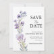 This beautiful purple wildflower save the date with a vintage feel is perfect for a modern wedding. Purple and white wildflowers are surrounded by this arrangement of plants.