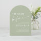 Having your Arch Sage Green The Night Before Rehearsal Dinner Invitation match the theme of your party is a great detail that your guests will appreciate. The thoughtfulness of a consistent party theme is often appreciated and can show your guests that you can host a cohesive event.