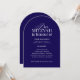 Arch Shape BRITISH spelling Dark Blue Bar Mitzvah Invitation