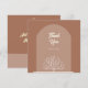 Unique yet beautiful way to send appreciation to friends and loved ones. This wedding thank you card has an arch design with a tree nature theme. On the back of the card are monograms along with space to add your special message. Shown in mocha brown (front and back). Just change the text to suit your needs. Use the template to personalize.