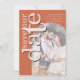 Arch Typography Photo Overlay Terracotta, A stylish design in earthy tones and your photo within an arch shape and behind a tinted overlay to invite your family and friends to save your date, with Save Our Date in large typography rotated and to the left hand side at the top Easily personalise the rest of the text and replace the sample photo with your own which will be behhind a tinted overlay and should be of portrait orientation and cropped so the main subject area is slightly offset to the right. Background colors can be changed on each side if you wish via Customize further.