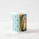 Decorative bone china mug with an ancient depiction of the Archangel Michael slaying Satan as the dragon.