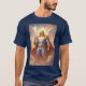 My 11 yo wore adult XL (5’7” 165#). The 8yo is small framed. She wore adult small and tied it in the back. Grandma wore adult large with long sleeve shirt underneath. Tall girl adult medium. Dark haired male adult large. Good quality dark Heather gray, Gildan brand shirt. -it was next up from basic choice and cost about $20 per shirt. Not too thick or thin. Washed and dried well, no major shrinkage. Not see-through. Can wear a bra under it fine. Screen print is just as shown and well done, front and back.