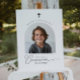 A modern First Holy Communion welcome sign, featuring an arched photo and the word 'Communion' in a calligraphy style font. Please note that you cannot change the 'Communion' word but you can edit all of the other text in this design. You can change the colour of it or you can delete it and replace it with a new text box if you prefer.