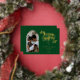 Arched Photo Merry Christmas and Holly on Green Foil Holiday Card